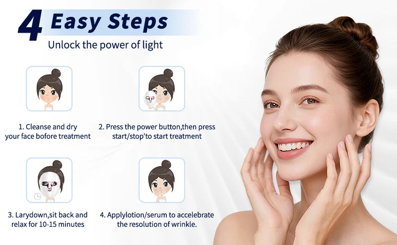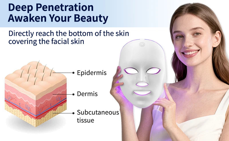 With 7 therapeutic LED lights, this innovative mask works deep within your skin to reduce wrinkles, acne, blemishes and sagging, revealing a healthier, glowing complexion from the very first sessions.
