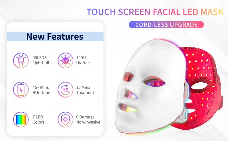 Facial LED Mask Rechargeable ,7 Colors LED Photon Beauty Mask Skin Rejuvenation Face