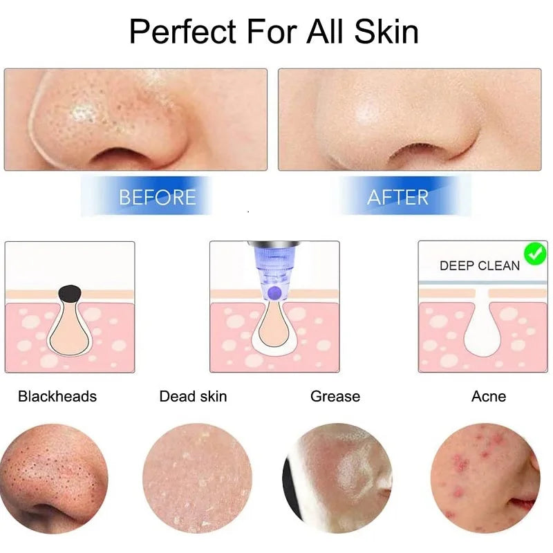 ✨ Adjustable suction technology: removes blackheads, whiteheads, and dirt trapped in pores without irritation.